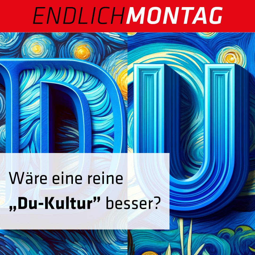 Endlich Montag! (KW 19) „Du-Kultur” zur Frühlingsaktion Ich wünsche Ihnen einen wunderschönen Start in diese schöne Maiwoche. Eben noch tanzten wir in den Mai und schon sind wir eine Woche in diesem schönen Monat. Unsere erste MasterClass auf Mallorca war ein voller [...]